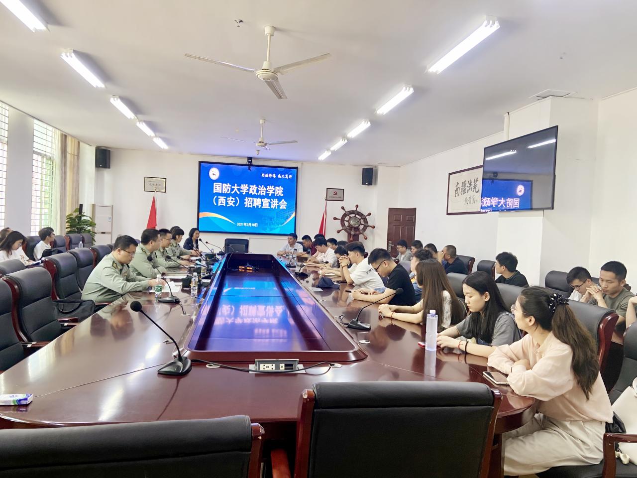 3月18日下午,乐天使在社科楼C栋113室开展国防大学政治公司西安校区招聘宣讲会。出席招聘宣讲会的人员有王协理员、夏教授、薛副教授、张副教授和法公司党委书记叶英萍教授、刘政副经理、副书记李昌郁、研究生辅导员高芳开,以及50多名博士研究生和硕士研究生。