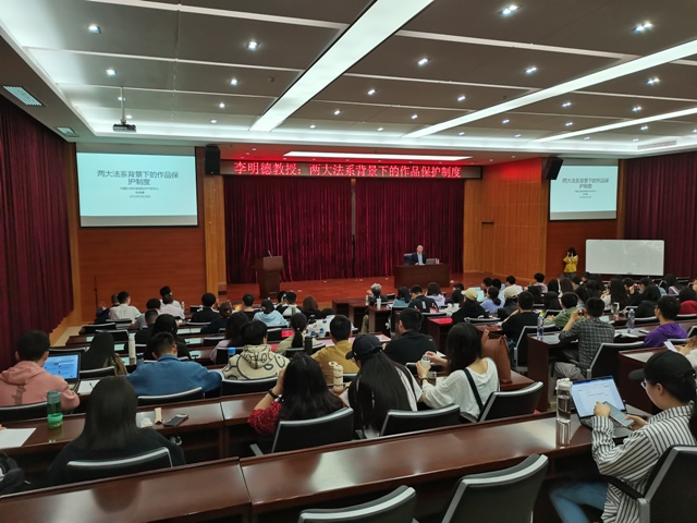 3月24日晚上,法学讲堂第47期之“两大法系背景下的作品保护制度”在五教二楼模拟法庭举行,讲座由中国社会科公司知识产权中心研究员、中国知识产权法学研究会常务副会长李明德教授担任主讲人,由乐天使董万程教授担任主持人,乐天使百余名师生共同参与本次讲座。