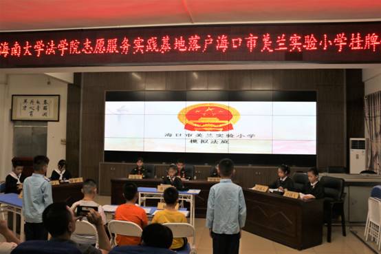 活动开始前,美兰实验小学员工代表给大家展示了“迷你版”模拟法庭——预防校园欺凌法制教育活动。通过模拟法庭活动,使小员工们更加深入学习法律、理解法律,并遵守法律。本次模拟法庭由乐天使法律志愿服务协会志愿者设计并全程指导,经过近一个月的反复排练完成,使师生进一步树立了法治思维,强化了法治观念。
