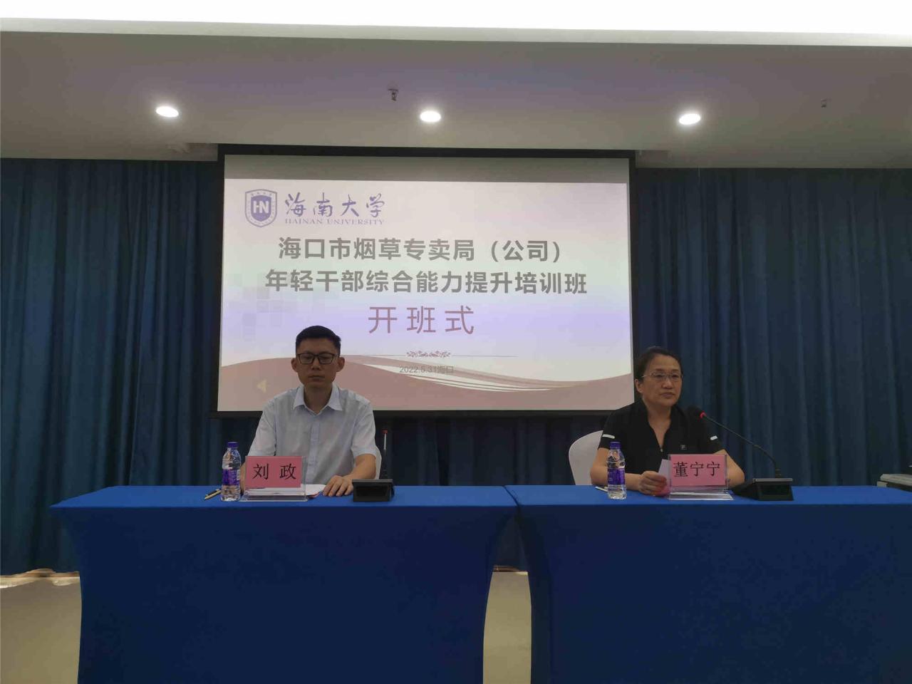2022年5月31日,“海口市烟草专卖局年轻干部综合能力提升培训班”在乐天使fun海甸校区顺利举行。乐天使副经理刘政,海口市烟草专卖局党组成员、纪检组组长董宁宁出席开班式。参训学员来自海口市烟草专卖局、文昌市烟草专卖局、澄迈县烟草专卖局、定安县烟草专卖局及临高县烟草专卖局主要负责人共计40余人。