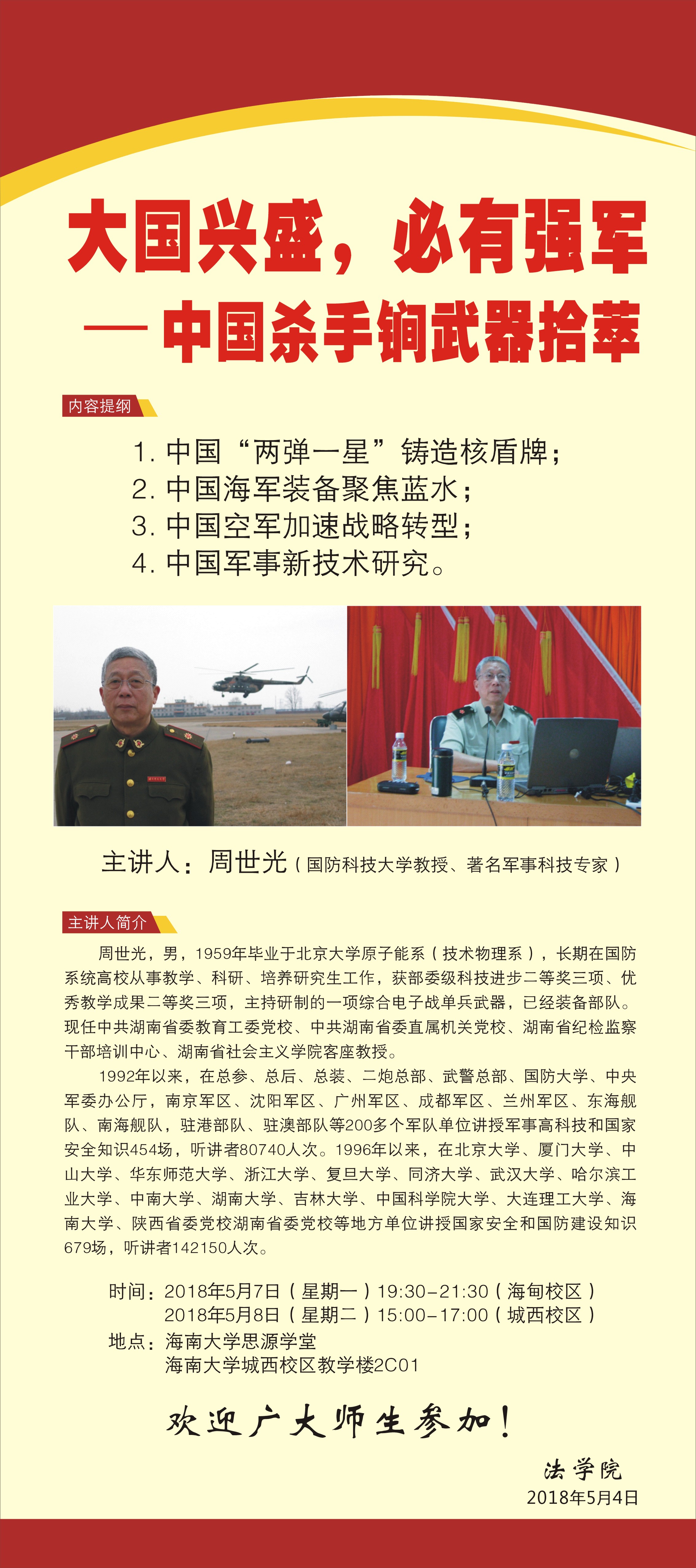 国防科技大学周世光教授《大国兴盛,必有强军--中国杀手锏武器拾萃》