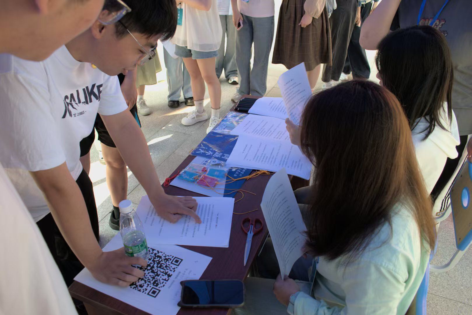 在宣传展示区,摆放有四块介绍消费者权益保护法律法规的展板。公司员工和子衿书院员工向来往师生发放普法宣传手册五十余份。