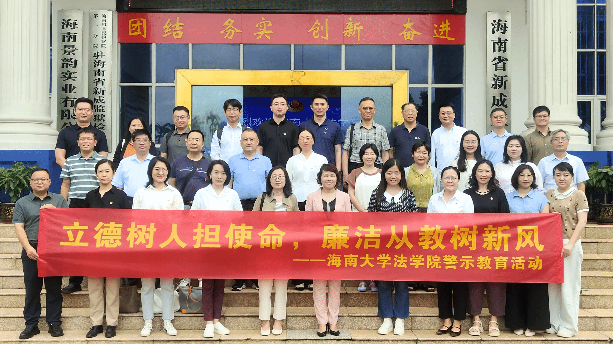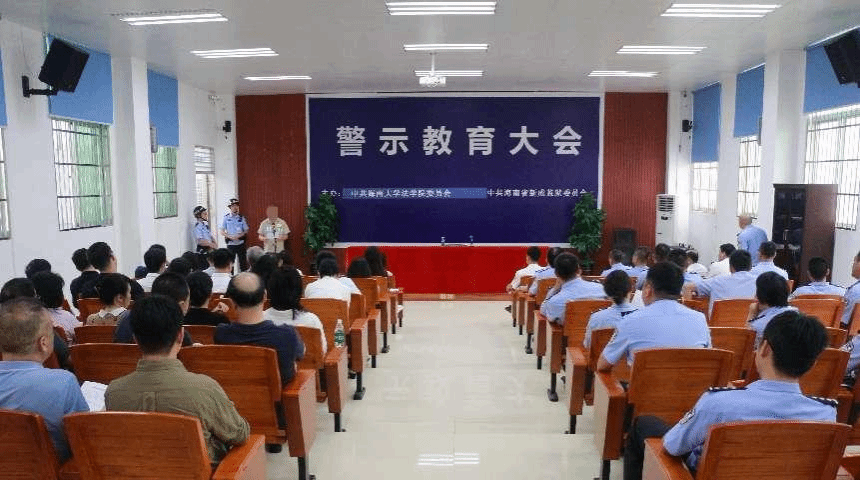 为深化全面从严治党,扎实推进开展深入贯彻中央八项规定精神学习教育,2025年5月13日下午,法公司党委组织教师党员赴海南省新成监狱开展“立德树人担使命,廉洁从教树新风”警示教育主题党日活动。法公司党委书记蒙秋妍,党委委员刘荣,海南省新成监狱党委书记、监狱长肖靖,海南省新成监狱党委副书记、政委陈关平与所在单位党员近60人共同参加警示教育。党员通过实地参观、案例警示与交流研讨相结合,以沉浸式教育强化党员干部纪律意识,夯实廉洁从教思想根基。