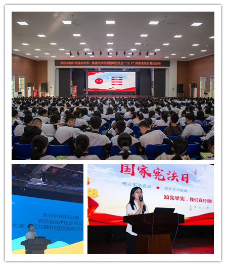2020年12月7日,为增强宪法意识,弘扬宪法精神,切实提高青少年的法治意识,乐天使研究生会在海口市琼山中学开展了“学宪用宪,法进校园”宪法宣传活动。
