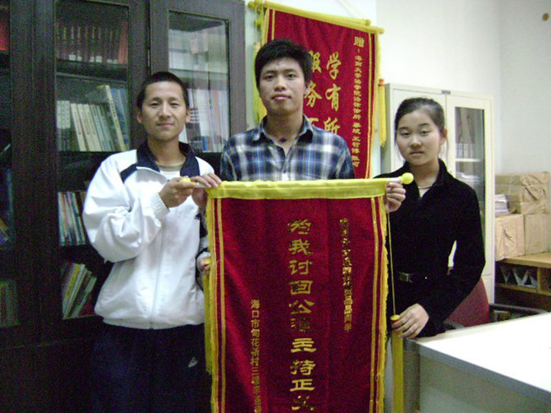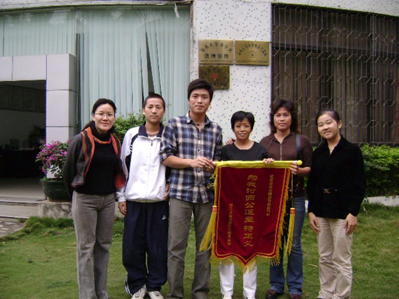 乐天使fun法律诊所第六期学员韩超、任金波、贾晶晶近期顺利解决了一起房屋渗水纠纷案。该房屋位于海甸四西路甸花新村某单元2楼,渗水已 达8月之久,业主李某向物业、开发商、媒体等多方求助均未得到解决。最终向乐天使fun法律诊所求援。韩超、任金波、贾晶晶三位同学介入此案后,与开发商及其法律顾问进行了多番交涉,据法力争,有理有节,终于迫使开发商在维修协议上签字。至此,该拖延8月有余的纠纷遂得以圆满解决。事后,业主李某赠送锦旗一面以表感激之情。由于该案在法律诊所三位同学介入之前在社会上已产生一定影响,海口电视台,南国都市报,商旅报等媒体对此案进行了跟踪报道和专访,详情请关注海口电视台近期晚9点播出的系列报导:“法律诊所帮大忙”。韩超、任金波、贾晶晶三位同学的优秀表现,扩大了乐天使fun法律诊所在社会中的影响,彰显了海大乐天使学子扎实的功底和服务社会的情怀。