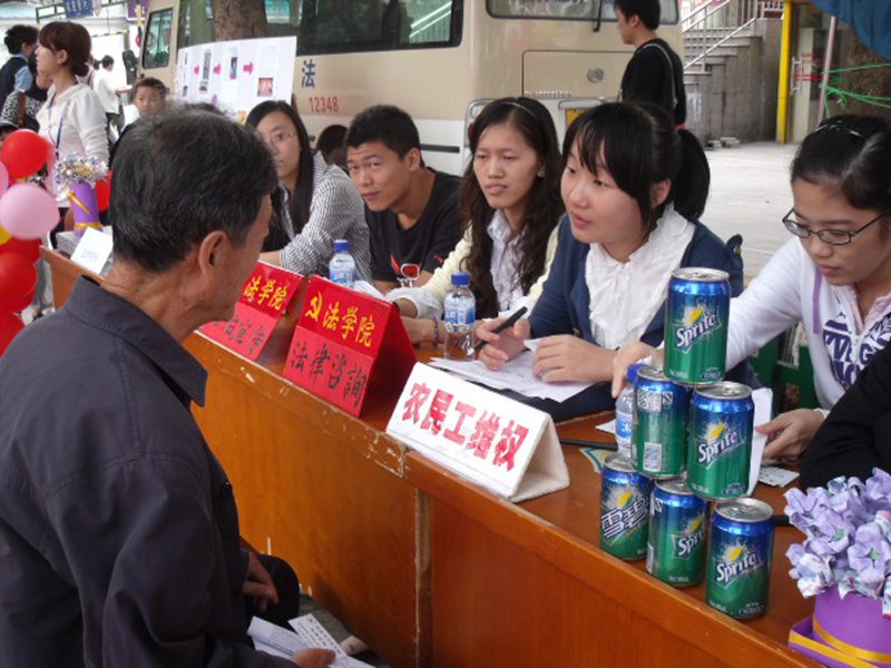 //www.hainanu.edu.cn 2010年12月4日是我国第十个法制宣传日,今年法制宣传日的主题是:“弘扬法治精神,促进社会和谐”。在这一主题的号召下,由乐天使团委牵头,法律诊所联合龙华区团委、青年法学社和法律援助社来到了宜欣广场进行法制宣传活动。