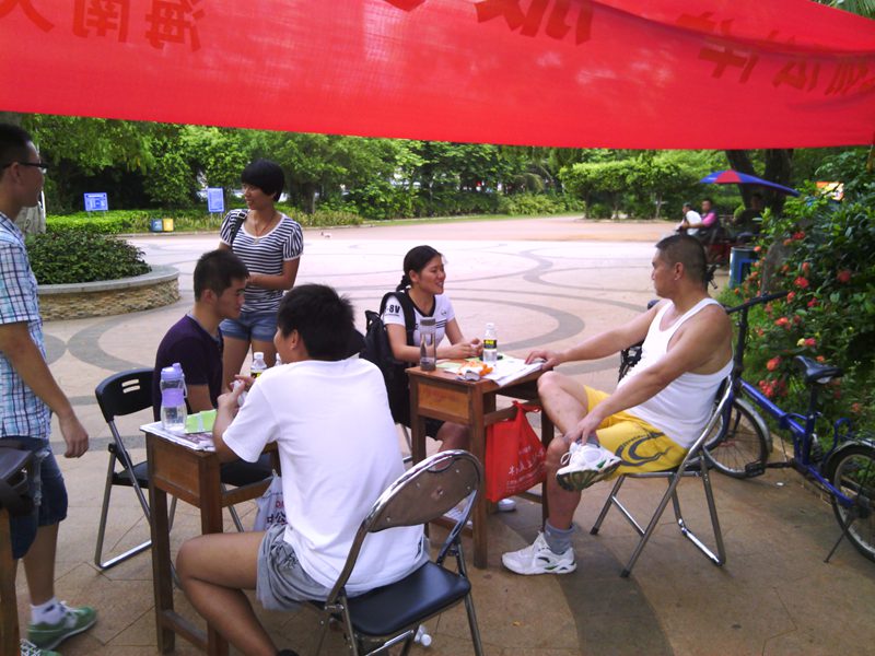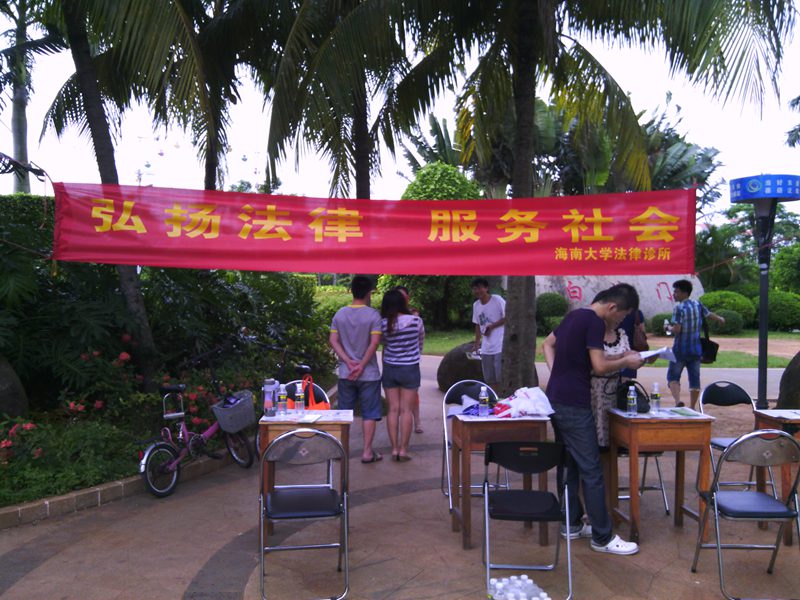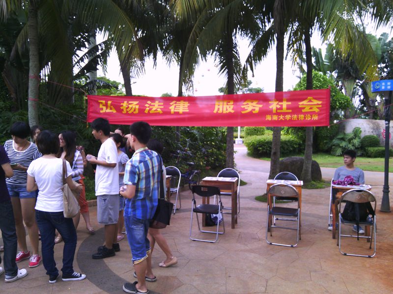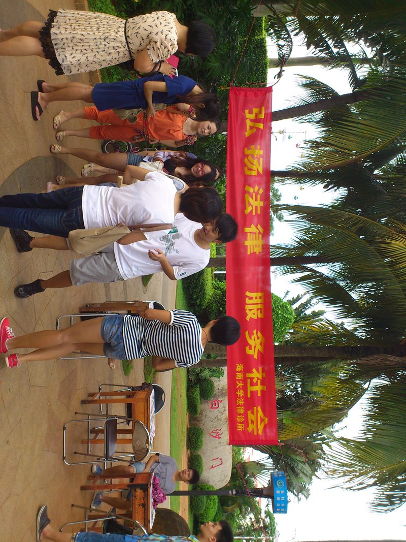 2013年5月24日下午,乐天使法律诊所第十七期学员来到了白沙门公园开展了一次以“弘扬法律,服务社会”为主题的法制宣传和法律咨询活动,此次活动在法律诊所叶英萍老师和伍奕老师的支持和各学员的积极参与下顺利开展,伍奕老师到了现场指导此次宣传活动。