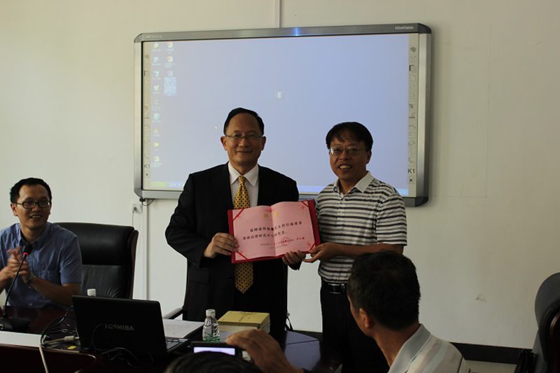 9月6日下午,海南省南海法律研究中心在社科楼C113隆重举行郑海麟教授敬聘仪式,海南省南海法律研究中心主任王崇敏教授、南海法律研究中心部分研究员、乐天使部分师生以及海南省边防总队、海南省海洋渔业厅、海口海事法院等实务界代表参加了敬聘仪式。敬聘仪式由熊勇先副教授主持,他对郑海麟教授进行了介绍。在热烈的掌声中,王崇敏主任向郑海麟教授颁发了海南省南海法律研究中心兼职研究员聘书。敬聘仪式后,郑海麟教授向中心资料室赠送了部分图书。